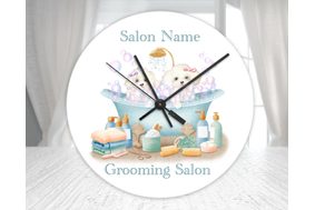 Personalised Dog Grooming Salon Glass Wall Clock – Bath Time Puppies Design (20cm & 30cm) £15.99