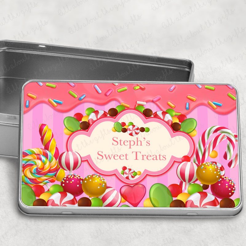 Brighten up storage with this playful personalised tin (18.4 x 11.4 x 5.5 cm), decorated with a lively colourful sweets design on a pink background. Bursting with candy-inspired charm, this cheerful tin is perfect for keeping treats, trinkets, or small gifts safe. A fun and practical keepsake, it’s an ideal present for anyone with a sweet tooth or love for vibrant designs.