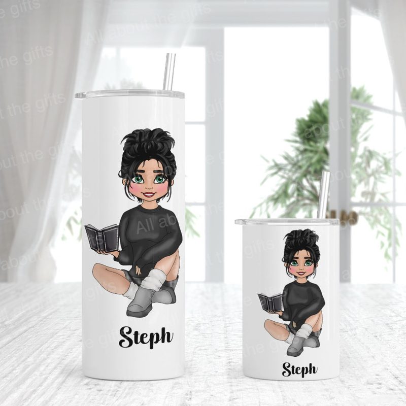 Celebrate a love of reading with this beautifully designed personalised tumbler, featuring a stylish female reader illustration. Perfect for book lovers, this elegant design makes a thoughtful and practical gift for anyone who enjoys getting lost in a good book.