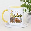 Celebrate the builder in your life with this custom 11oz ceramic mug, designed to add a personal touch to every coffee break. Featuring a detailed illustration of a builder proudly standing in front of a brick wall, complete with a hard hat, this mug can be fully customised to reflect your unique style.