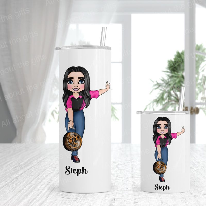 Celebrate a love of bowling with this stylish personalised tumbler, featuring a female bowler illustration. Perfect for league players, casual bowlers, or anyone who enjoys time at the lanes, this tumbler makes a thoughtful and practical gift.