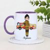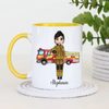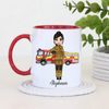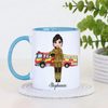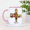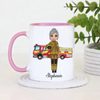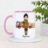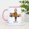 Celebrate courage and dedication with this charming personalised firefighter mug, featuring a cute female firefighter illustration standing proudly in front of a fire engine. This thoughtful design is perfect for recognising the everyday hero in your life, whether it’s for yourself or as a meaningful gift.