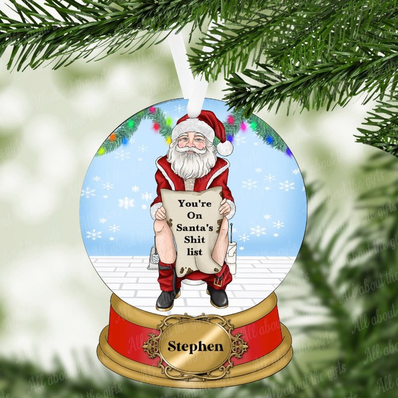 Santa’s Shit List Snow Globe Ornament – 100mm x 78mm MDF (Gloss or Glitter Finish)