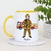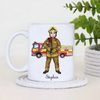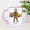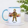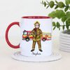Celebrate bravery and dedication with this personalised firefighter mug, featuring a detailed male firefighter illustration standing proudly in front of a fire engine. This meaningful design is perfect for recognising the everyday hero in your life.