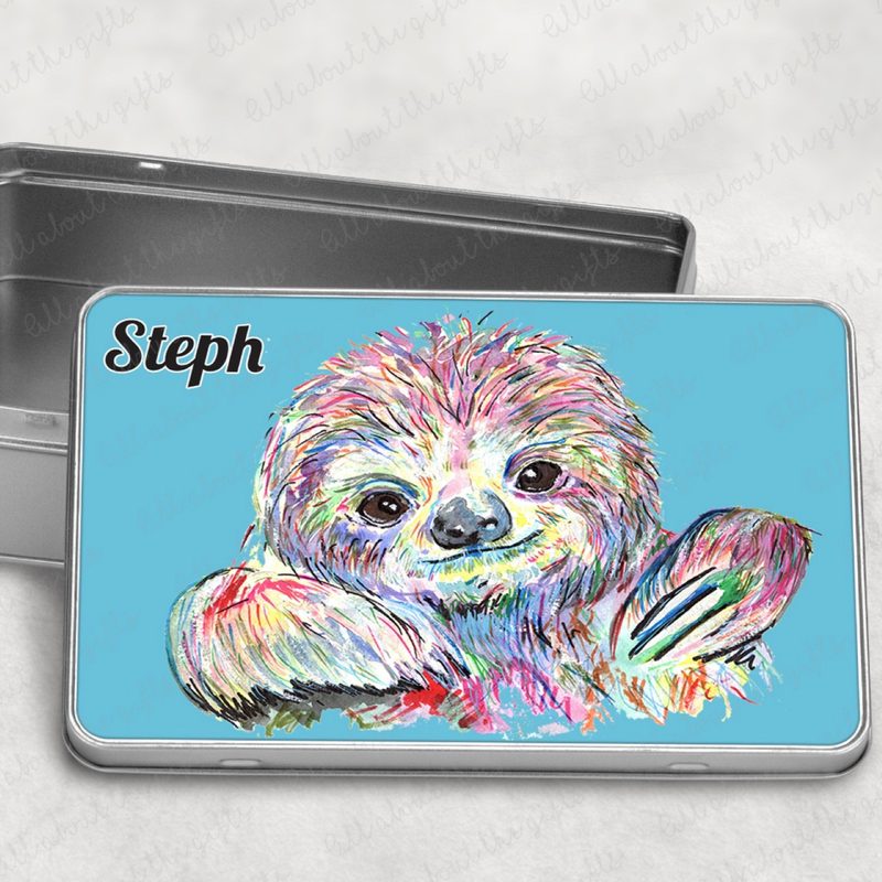 Ideal for sloth lovers of all ages, this customisable sloth tin makes a fun and thoughtful gift, whether for birthdays, holidays, or just because. Compact, durable, and bursting with colour, it’s a delightful way to store your treasures while brightening up your shelf, desk, or craft space.