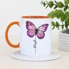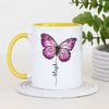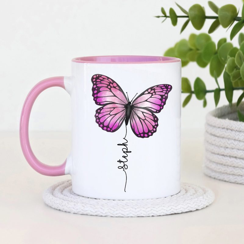 Enjoy every sip with this charming personalised pink butterfly mug. A delicate pink butterfly takes flight, with your chosen name elegantly forming its tail. Customise the handle and inner colour to suit your style or the recipient’s taste. A thoughtful, one-of-a-kind gift for birthdays, celebrations, or simply brightening up your daily tea or coffee ritual.