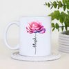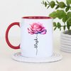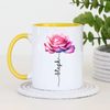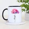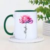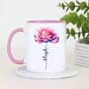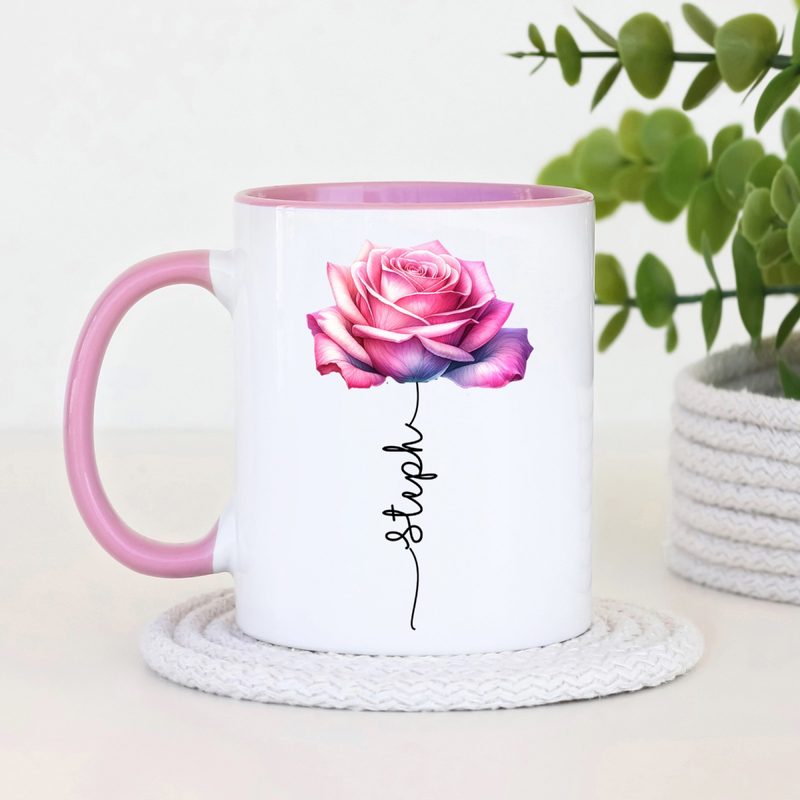 Indulge in elegance with this personalised pink rose mug. Featuring a delicate pink rose, your chosen name flows gracefully as part of the rose’s stem or tail, creating a truly unique keepsake. Customise the handle and inner colour to match your style or create the perfect gift for someone special. Ideal for birthdays, anniversaries, Mother’s Day, or simply adding a touch of beauty to your daily coffee or tea ritual.