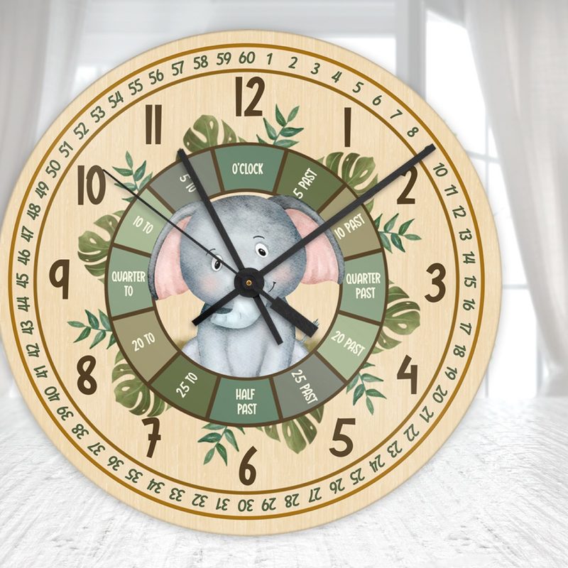 Each clock includes a clear time-learning dial with labelled sections for o’clock, half past, quarter past, and quarter to, along with an outer minute ring. This child-friendly layout helps young learners confidently understand both analogue time and everyday time phrases.
