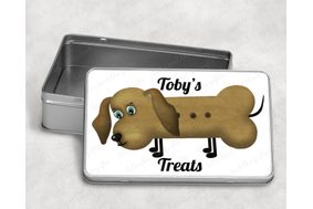 Personalised Dog Treat Tin – Bone Biscuit Dog Design, Pet Storage Box £12.50
