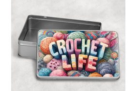 Crochet Life Storage Tin – Wool Ball Design, Craft Supply Box £12.50