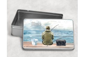 Personalised Fisherman Storage Tin – Pier Fishing Scene Keepsake Box £12.50
