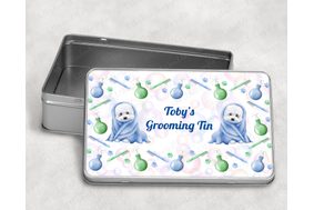Personalised Dog Grooming Storage Tin – Dog in Towel Design, Pet Care Tin £12.50