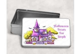 Personalised Halloween Storage Tin – Haunted House & Ghosts Design | Festive Keepsake £12.50