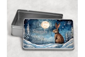 Personalised Hare Storage Tin – Night Scene Variations | Woodland Keepsake Box £12.50