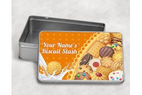 Personalised Biscuit Storage Tin – Splashing Biscuit in Milk Design, Snack Keepsake Box £12.50